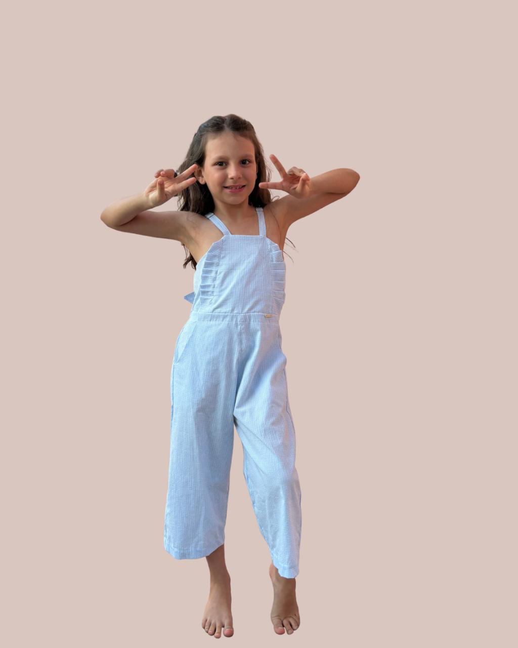 O macacão Xadrez Azul Céu é uma peça versátil e elegante, ideal para diversas ocasiões. Com modelagem pantacourt e tecido 100% algodão, oferece conforto e leveza durante todo o dia. O design conta com alças reguláveis que facilitam o ajuste ao corpo, além de uma abertura nas costas com amarração que valoriza a silhueta e proporciona um toque de delicadeza. A cintura possui elástico na parte posterior, garantindo liberdade de movimento sem perder o caimento perfeito. A estampa xadrez azul bebê e branco confere um visual moderno e atemporal. Esta peça pode ser usada em todas as estações, combinando facilmente com camisetas, casacos ou acessórios favoritos, criando diferentes looks com estilo e praticidade.